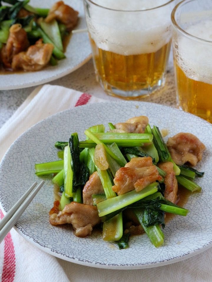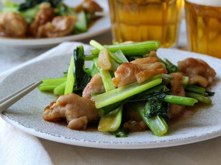 ビールにもごはんにも合う!家族みんなで味わえる「鶏もも肉と小松菜の中華炒め」