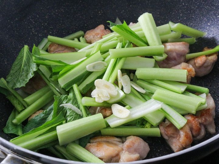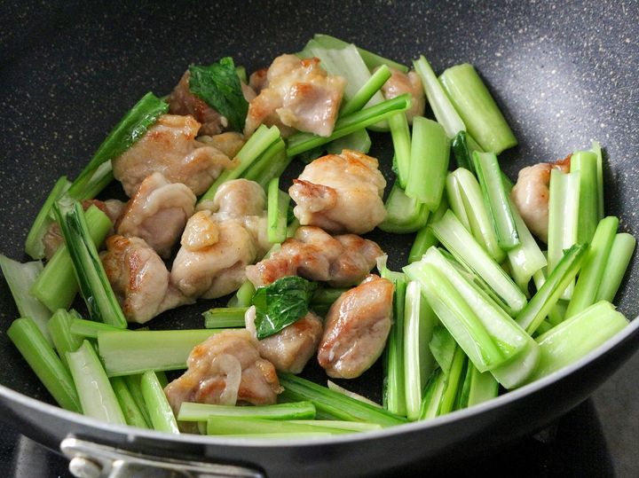 3. ビールにもごはんにも合う!家族みんなで味わえる「鶏もも肉と小松菜の中華炒め」