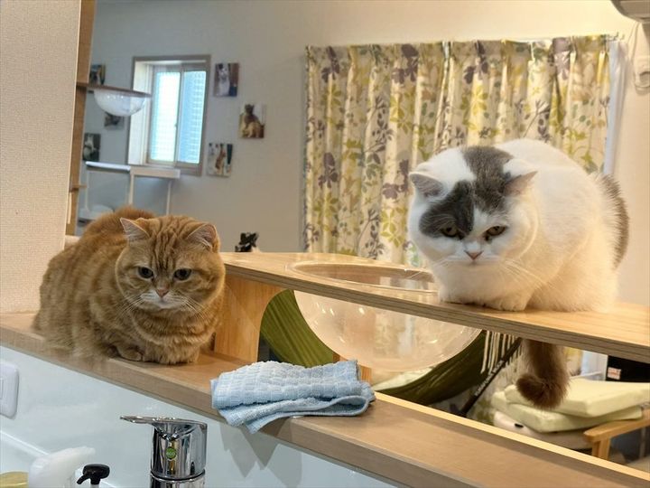 それは、「お皿をちゃんと洗っているのかニャ?」と、飼い主さんの行動を見守ってくれているかのよう。 心強い眼差しではありますが、これだけ凝視されると逆に緊張もしてしまいそう・・・。 ぱおちゃんの視線が特に鋭いですね。