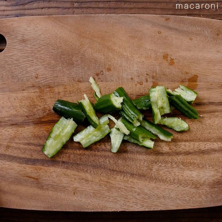 きゅうりはたたくことで味のなじみがよくなりますよ。