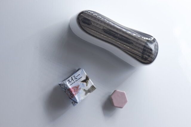 磁力が弱いのが難点ですが、消しゴムを2枚貼り合わせたものをパッケージに包んでから、シート状のマグネットを貼るとよりきれいに仕上がりますよ。