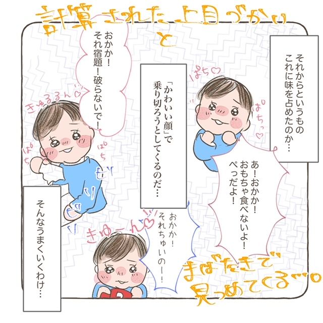 注意されたりすると、計算された上目遣いとまばたきで見つめきて「かわいい顔」で乗り切ろうとしてくるのだ・・・。