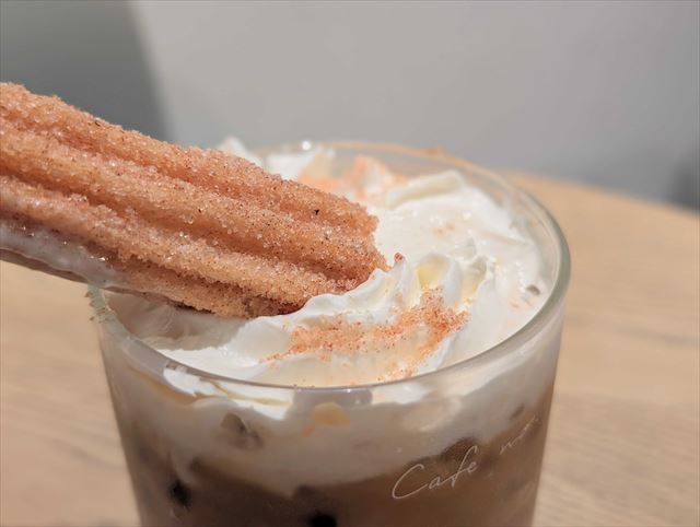 【SNSで話題の「チュロスラテ」を実食】カフェラテの上にチュロス!?東京・原宿カフェ「cafe no.」