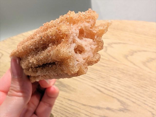 チュロスがザクザク! シナモンとクリームの優しい甘さが広がります。シナモンの風味はあまり強くないので、実はシナモンが濃いものが得意ではない筆者でも十分おいしく食べられました!