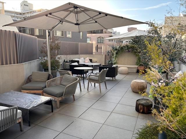 また、取材日はあいにくの雨だったためテラス席が解放されていなかったのですが、晴れているとこのような感じに。天気のよい日にはテラスでドリンクやスイーツを楽しむのもよさそうですね。