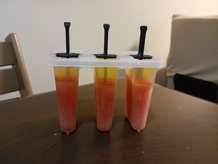 おいしい!っていうか、よく知っているスイカバーの味です(笑)。でも、子どもたちは家で作れたことに大興奮で本当に喜んでくれました。適当な容器を見つけられれば、自分の好きな大きさで作れるのもいいですよね。次回は、種入り(チョコ入り)にも挑戦してみたいです。