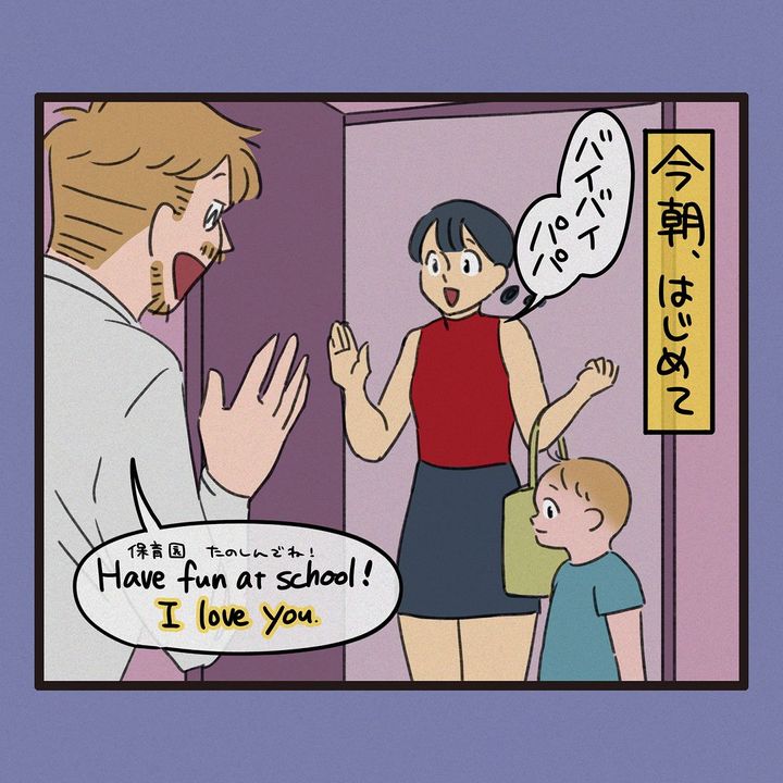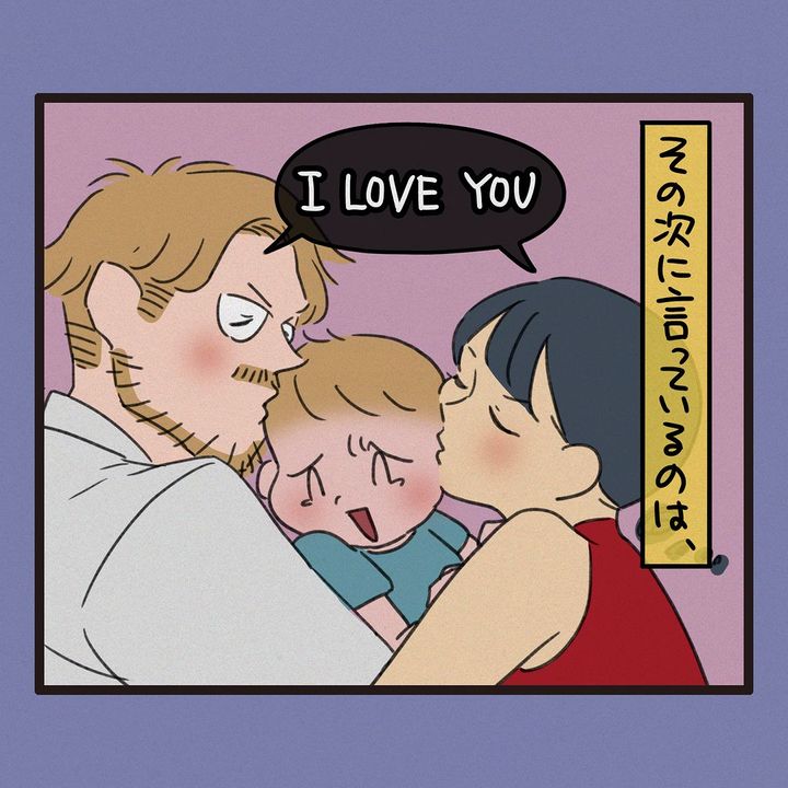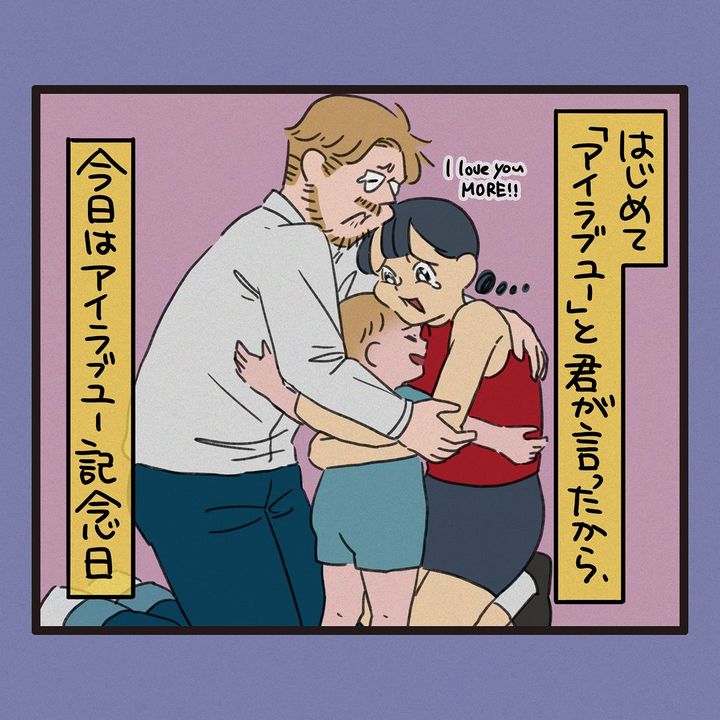 キキ、パパ、ママ、そして、「I LOVE YOU」という言葉をたくさん使っていた仲江キャンディさん夫妻。ある日の朝、キキくんが初めて「あいらびゅー」と口にします。「今日はアイラブユー記念日」と、涙を流しながら喜ぶ仲江キャンディさん夫妻なのでした。