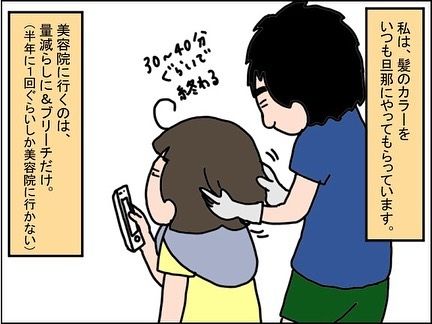 SAKURAさんは、髪染めを旦那さんに頼んでいるそう。月に2回の頻度で髪染めをしていますが、そのたびに、「染めてやるよ…俺色にな!」と口にするのでした。