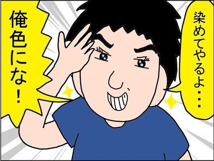 目を輝かせて、「染めてやるよ…俺色にな!」と話す旦那さんが素敵です!「それ…吐きそうだからもうやめてくれる……?」と言われても意に介さない旦那さんの屈強なメンタルにも感心しました。