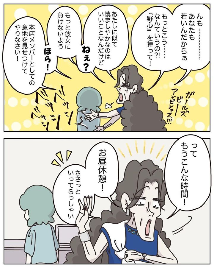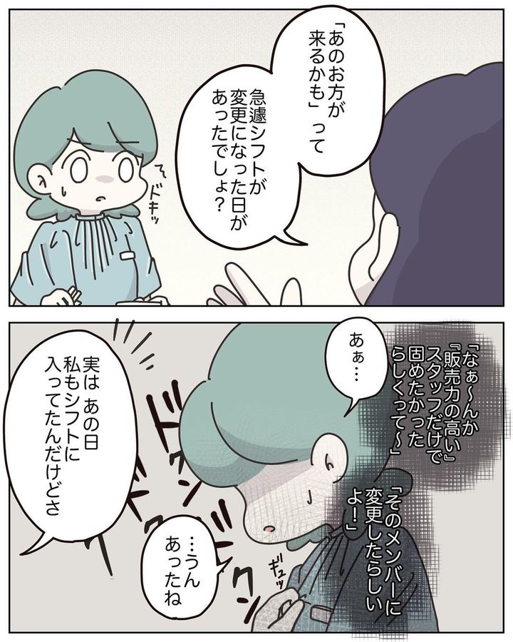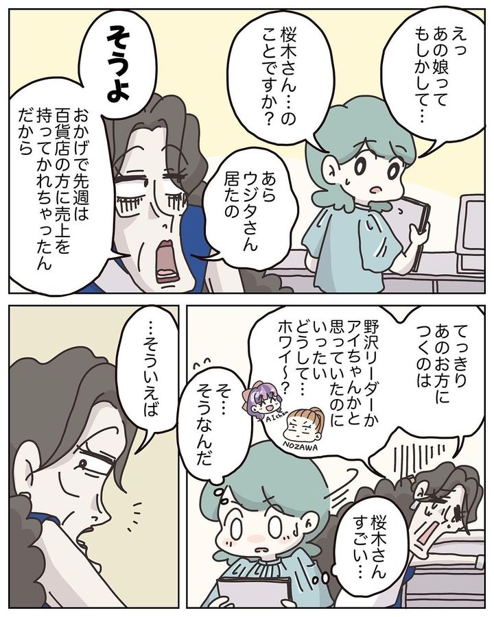 アパレル店員のウジタさんはある日、上司のスージーさんに同期の桜木さんと比べるような一言を言われて…?