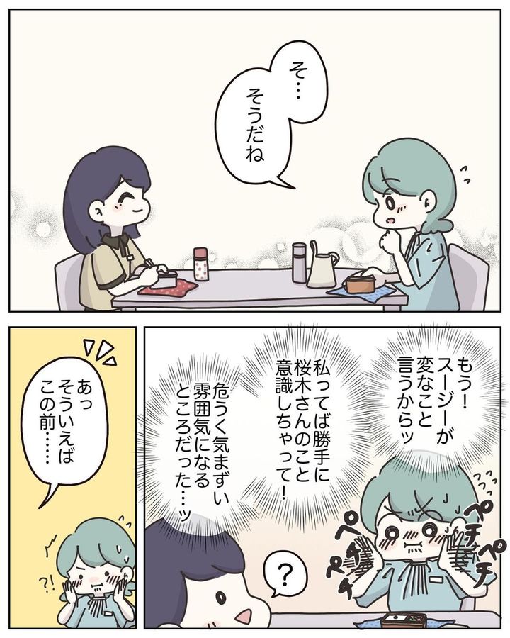 しかも、桜木さんの評価はスージーさんの手違いだったことが発覚!思わずホッと胸をなでおろしてしまった自分に気付き、つい彼女のことをライバル視してしまう、言い替えると他人と比べてしまう自分にモヤモヤしてしまうウジタさんでした。