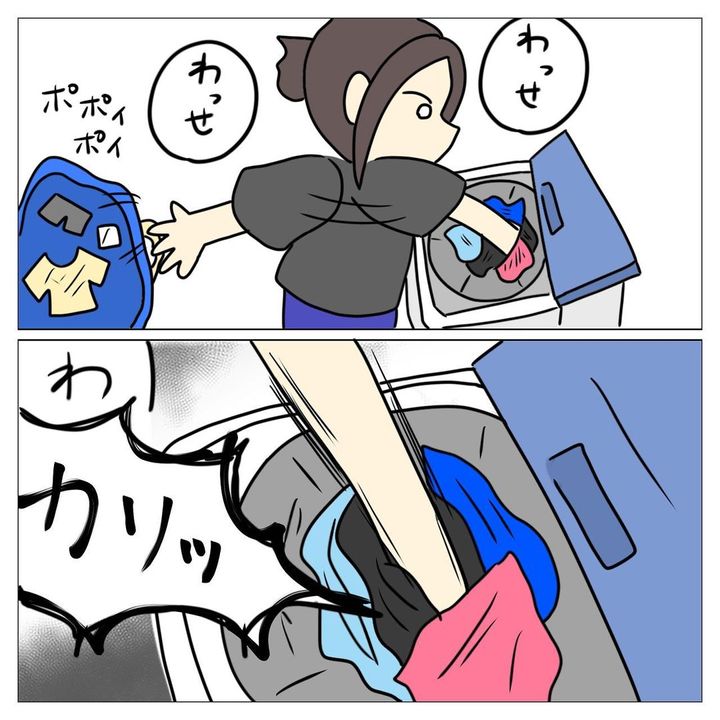 2. 洗濯物を取り出す女性→突然『カリッ』変な音が…“予想外の展開”に絶叫!