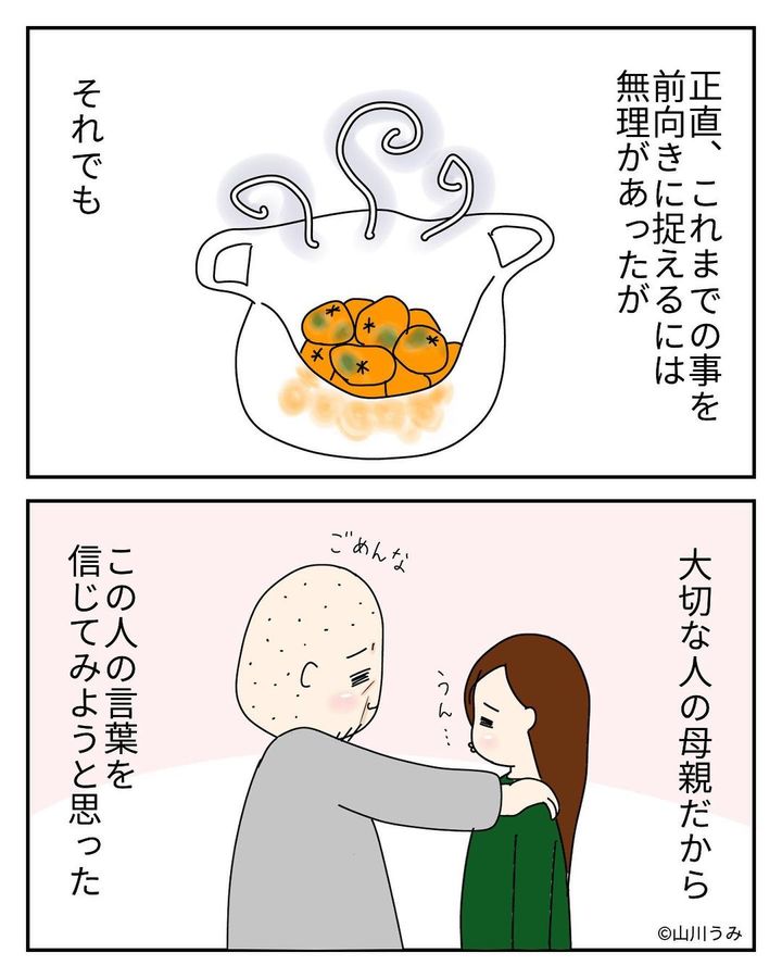 うみさんは、「義母のデリカシーの無さをしっかり受け継いでいる夫」とコメント。こんなにはっきり意思を伝えられたら、今後より一層うみさんへのあたりがきつくなるのではないか、と不安になってしまいます。義母と仲良く過ごせるようになる日は訪れるのでしょうか…。