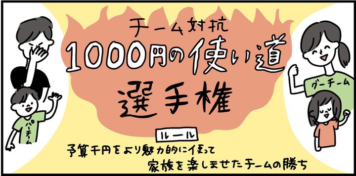毎回、家族みんなで特別じゃない日を特別にする方法を紹介するこの連載。今回は「チーム対抗1,000円の使い道選手権」です。