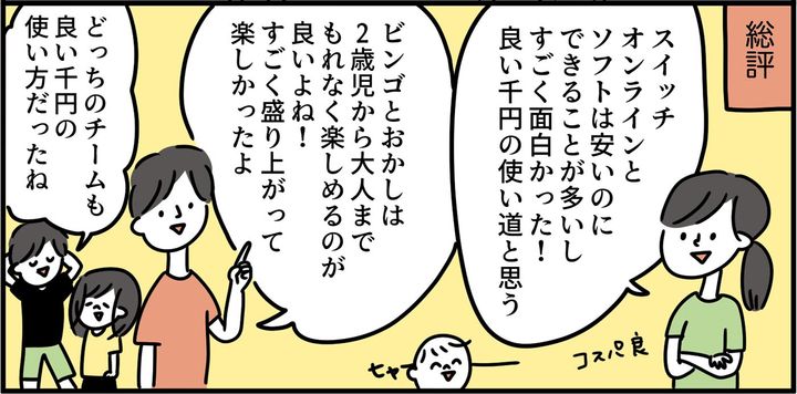 1,000円をサブスクとゲームソフトに使うというアイデアは私と娘にはなかったので、ゲーム好きの夫と息子ならではの使い道だなぁと思いました。楽しかった!