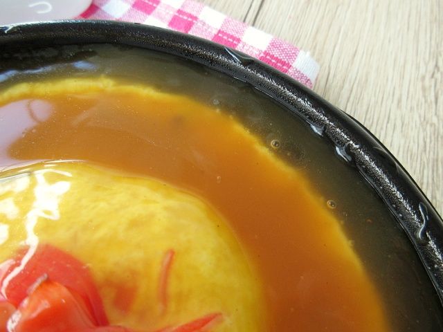 パッケージに書いてある通り、あんは容器ギリギリまで入っていますね。温めたら、あんがキャパオーバーしてこぼれ出しました。きっとドンキの天津飯を愛する情熱が勝って、溢れたのでしょうね。