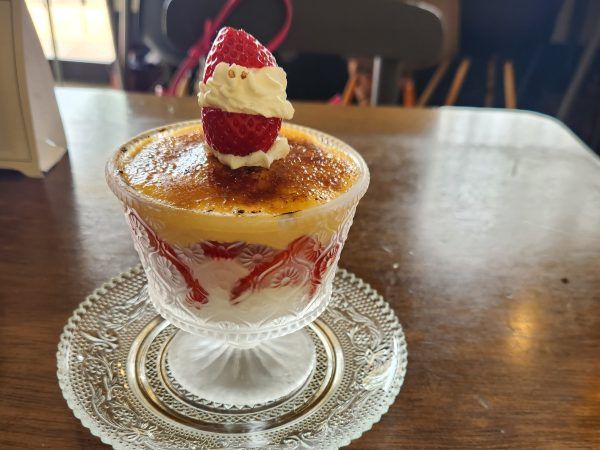 ハンバーグはボリュームたっぷりで、とってもジューシーでおいしかったです。 デザートにパフェを食べたかったのですが、さすがにお腹いっぱい。でも、どうしてもスイーツが食べたくて、メニューの中でも少し小さめサイズを。 苺ブリュレパフェ(620円)