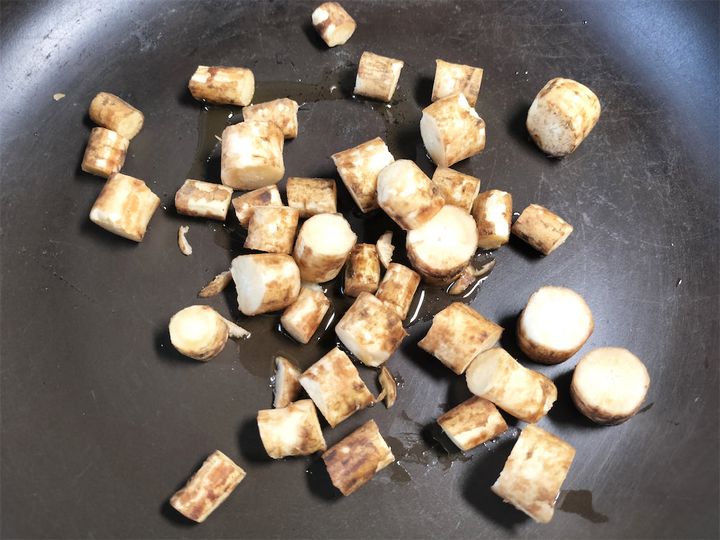 2. 鍋にオリーブオイルを入れて、強火でごぼうを炒めます。