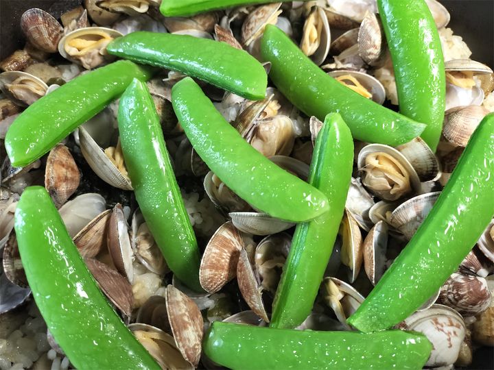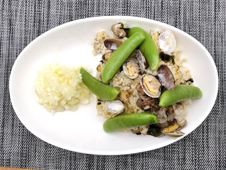 鍋のフタを開けると、わかめの独特な香りがふわっと広がり、それだけでおいしい炊き込みご飯ができたことが分かります。昆布の出汁で炊き上げているため、おいしさは間違いありませんが、ごぼうの食感とアサリの旨味、スナップエンドウのシャキシャキ感が加わり、「春を食べている」気分になります。アサリの殻を外しながら食べるのが少し面倒ですので、炊きあがった段階で殻を取り除いておくと食べやすくなりますよ。