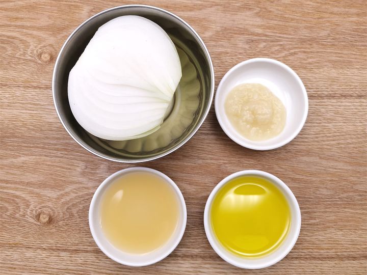 別添えの新玉ねぎのソースがまた絶妙で、少しずつ混ぜながら食べると酸味と塩気が加わり、旨味が倍増します。このソースだけでも食べられるほどおいしいです。
