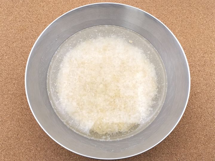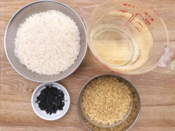 1. ボウルに白米、玄米、昆布汁を入れて軽く混ぜて10分ほどおきます。