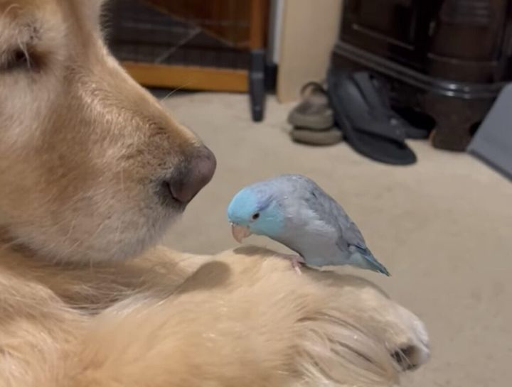 3. 求愛したくなるくらい犬さんが大好き♡ インコのかわいいアピール。