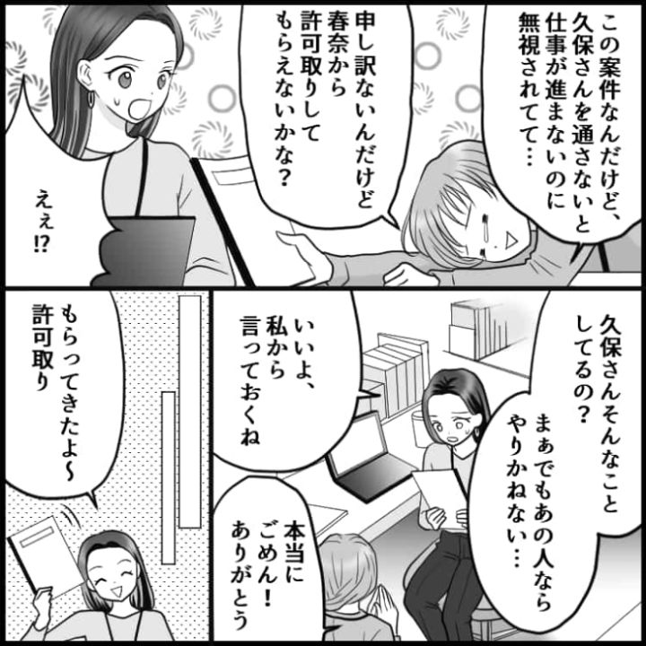 私を無視する上司。その人に許可を取らないと書類が提出できないのに・・・。困り果てた主人公にある出来事が起きたのであった・・・。