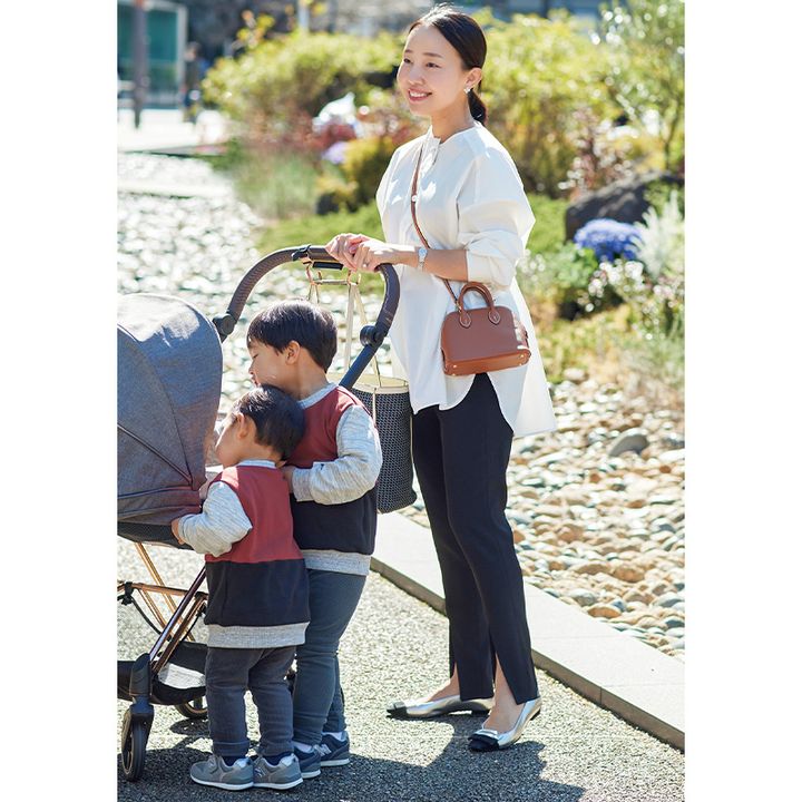 ウェディングシューズではいて以来、愛着のあるロジェの靴。妊娠前はヒールも愛用していましたが、母になり、ぺたんこやスニーカーのカジュアル靴でも損なわれないロジェならではの女っぽさは、子どもが増えるほどにますます強い味方に。歩きやすさはもちろん、色や柄、バックルやビジューなど、ヒールで盛れなくても華やかさを保ってくれるデザインの豊富さは随一だと思います。