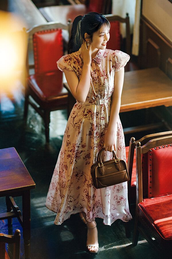 ワンピース¥8,690/tocco closet(tocco closet 新宿ルミネエスト店) イヤリング¥8,250/ニータ(ロードス) バッグ¥198,000/J&M デヴィッドソン(J&M デヴィッドソン カスタマーセンター) 靴¥22,000/銀座かねまつ(銀座かねまつ6丁目本店)