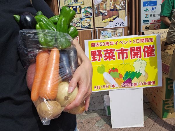 開店50周年イベントは5月24日までの開催で、初日と最終日の14:00~は野菜の詰め放題、ガラポン、子供向けお菓子つかみ放題などの企画が催されます。