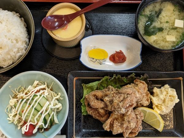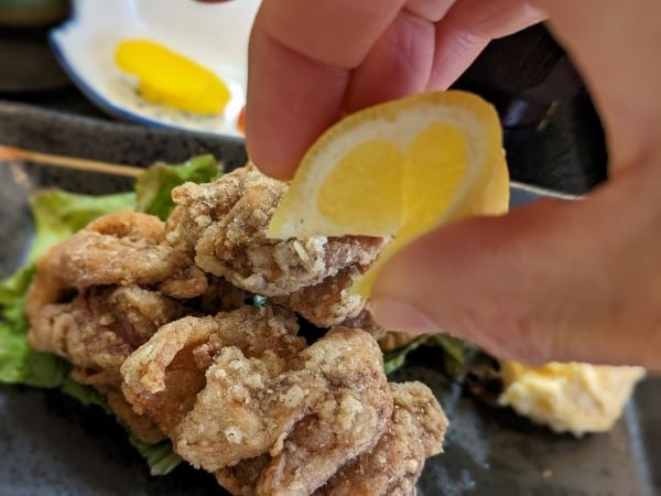 メインのから揚げにレモンをぎゅっと絞ったら、たまりませんね~。