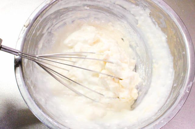 今回は無糖のプレーンヨーグルトを加えました。ヨーグルトは水分が多いので、クリームチーズがさらにやわらかくなりますよ。