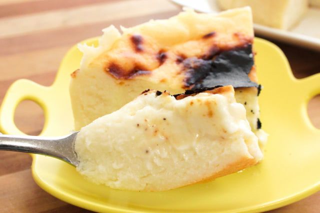「バスクチーズケーキ」は、ケーキの表面を焦がして作るスペイン・バスク地方発祥のチーズケーキ。一般的なベイクドチーズケーキよりも香ばしい風味を楽しめるんですよね♪