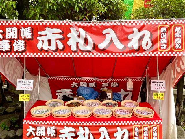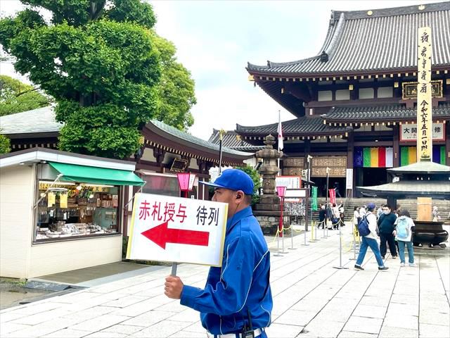 しっかりとお参りを済ませたら、いよいよ赤札を貰いに行きましょう! 赤札の授与を待つ列には、境内のあちこちに立つ係の方から案内してもらえますよ。