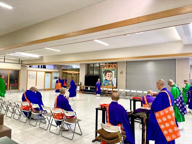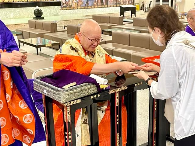 先ほど炎の前にいらした貫首さんも参加され、「南無大師遍照金剛」とのお経が響くなか、大勢の参拝の方が、手渡しで赤札をいただいていました。