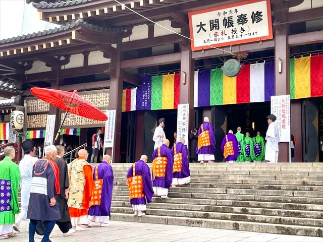 2024年5月1日から5月31日までの1カ月間にわたり、さまざまな法要や記念行催事が行われる大開帳奉修。それだけでなく、10年に1度の特別な護符「赤札」を授与してもらえるとあって、賑わいはかなりのものです。