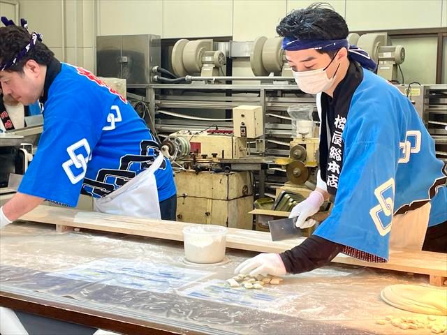 写真は「松屋総本店」さん。試食させていただくと、優しい甘さと絶妙な柔らかさが特徴的。噛まずに舐めていただきましょう。