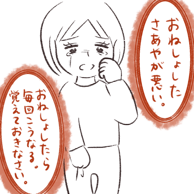 「おねしょしたさあやが悪い。おねしょしたら毎回こうなる。覚えておきなさい」
