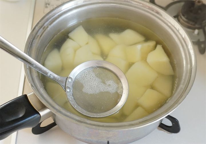 材料はシンプルですが、じゃがいもの旨味と塩味が溶け出た茹で汁を加えることで奥深い味わいになっています。