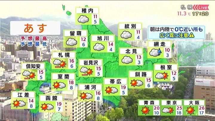 背景は24日(金)午後5時20分頃の札幌情報カメラ