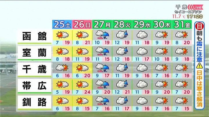 日曜日も道東の内陸を中心に冷えますので、引き続き霜に注意が必要です。