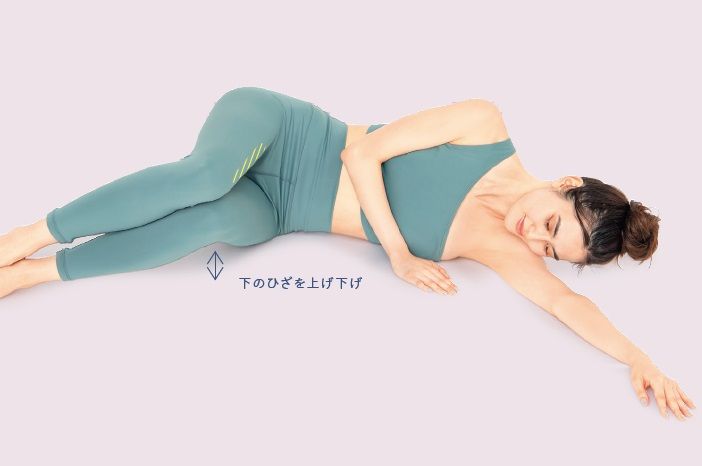 ひざを上げ下げすることで内転筋が鍛えられるので、下のひざをしっかり上げ、内転筋が刺激できているか意識してトレーニングしよう。