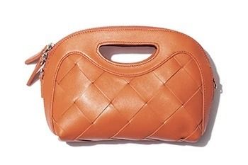 オレンジ編み込みバッグ /ペリーコ(アマン) 上質なレザー素材で鮮やかなオレンジを品よく。取りはずし可能なショルダーストラップつきだからシーンを選ばず使える。