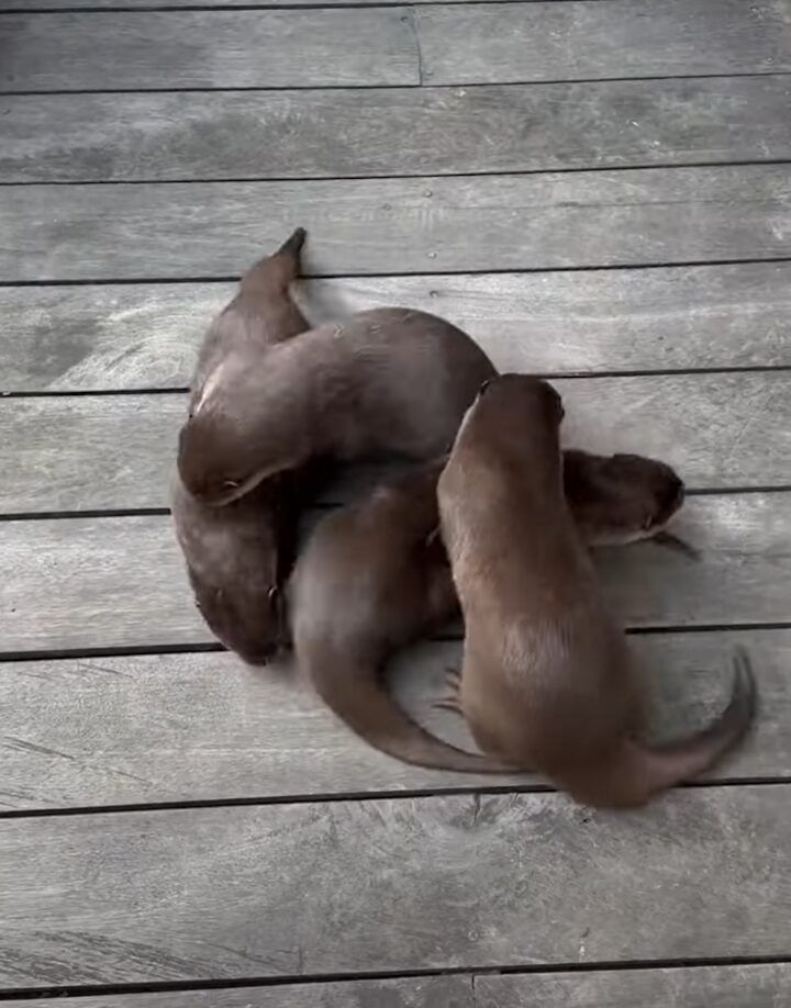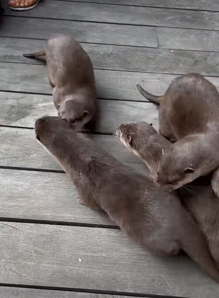 向かっていった先にも2匹のカワウソの姿がありました! この子たちは、撮影者さんと暮らしているカワウソなんだそうです。
