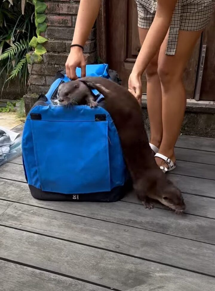 女性の携えていたカバンから出てきた2匹のカワウソ。 向かった先で待っていたのは・・・