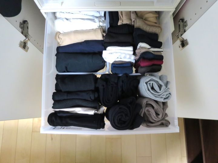 さすがに穴があいた靴下は捨てていましたが、日常的に履くのは結局履き心地の良いものだけで、全然履いていないものが奥の方に溜まっていました。それらを毎日の靴下選びの際に間引いていきました。