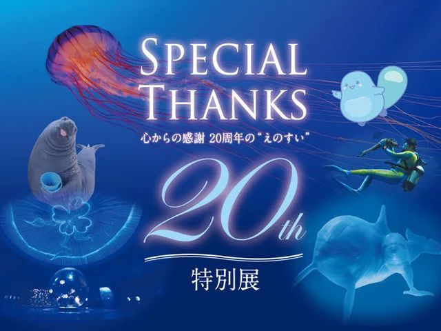 「新江ノ島水族館」では2024年4月16日(火)〜2024年7月7日(日)の期間で「新江ノ島水族館 20 周年特別展」が開催されています。"えのすい"の歴史の歴史がわかるコーナーやイワシショー、クラゲショーなどが期間限定で開催されます。