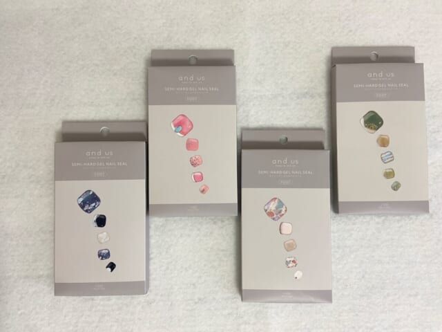 3COINS「セミハードジェルネイルシールフット」(税込 各550円)