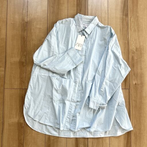 【40代のZARA】バサッと羽織るだけでおしゃれ。ポケット付きの変化球も可愛い「ブルーシャツ」