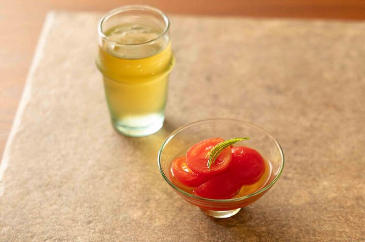 色鮮やかなトマトに合わせるのは、ウォッカ。ジャスミンティーで割ると華やかさがぐんと増します。